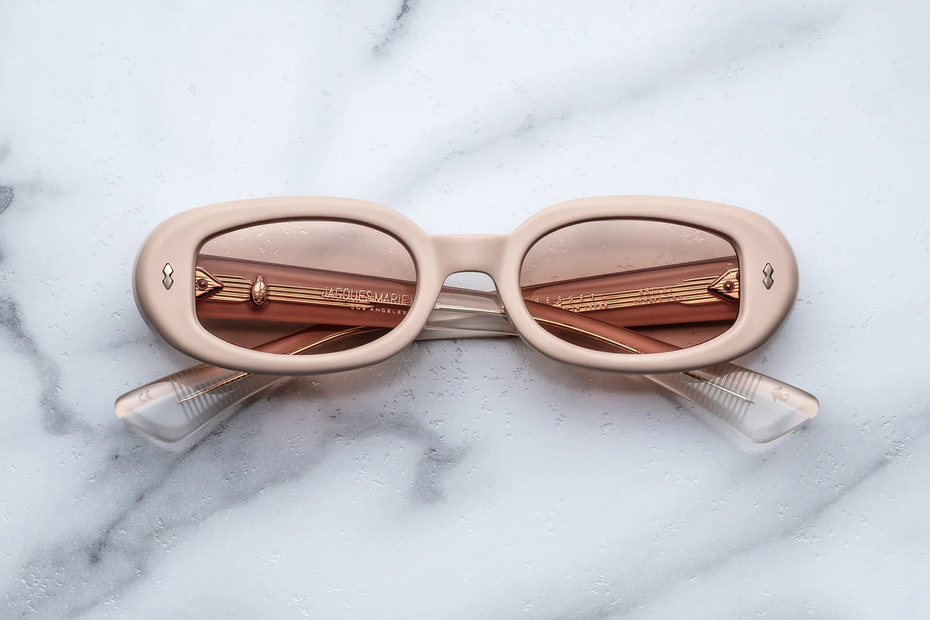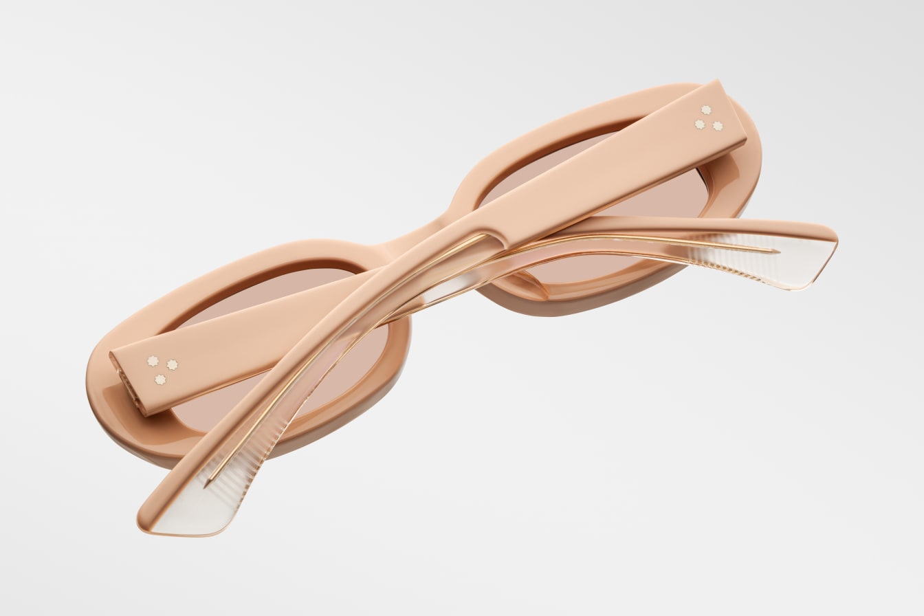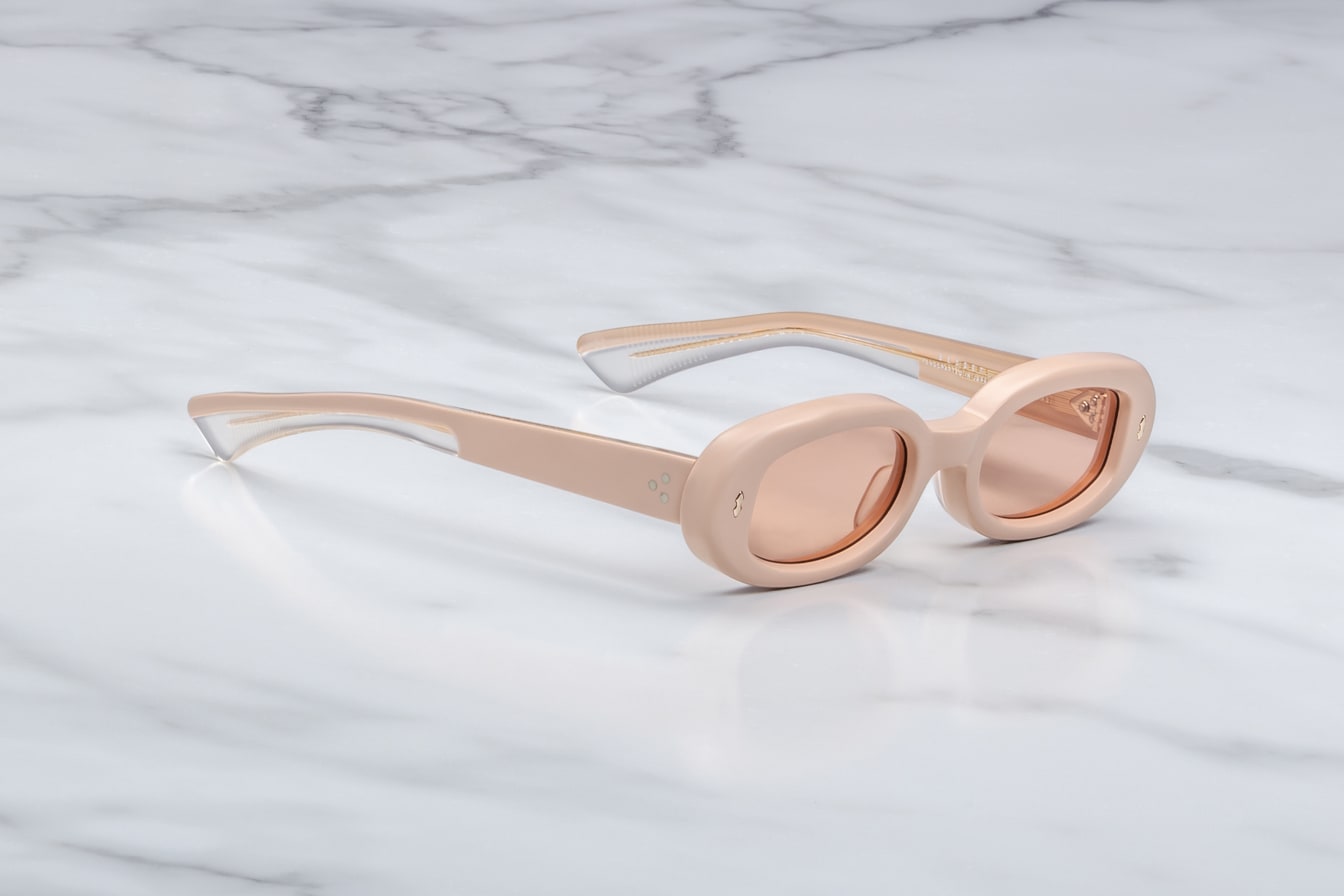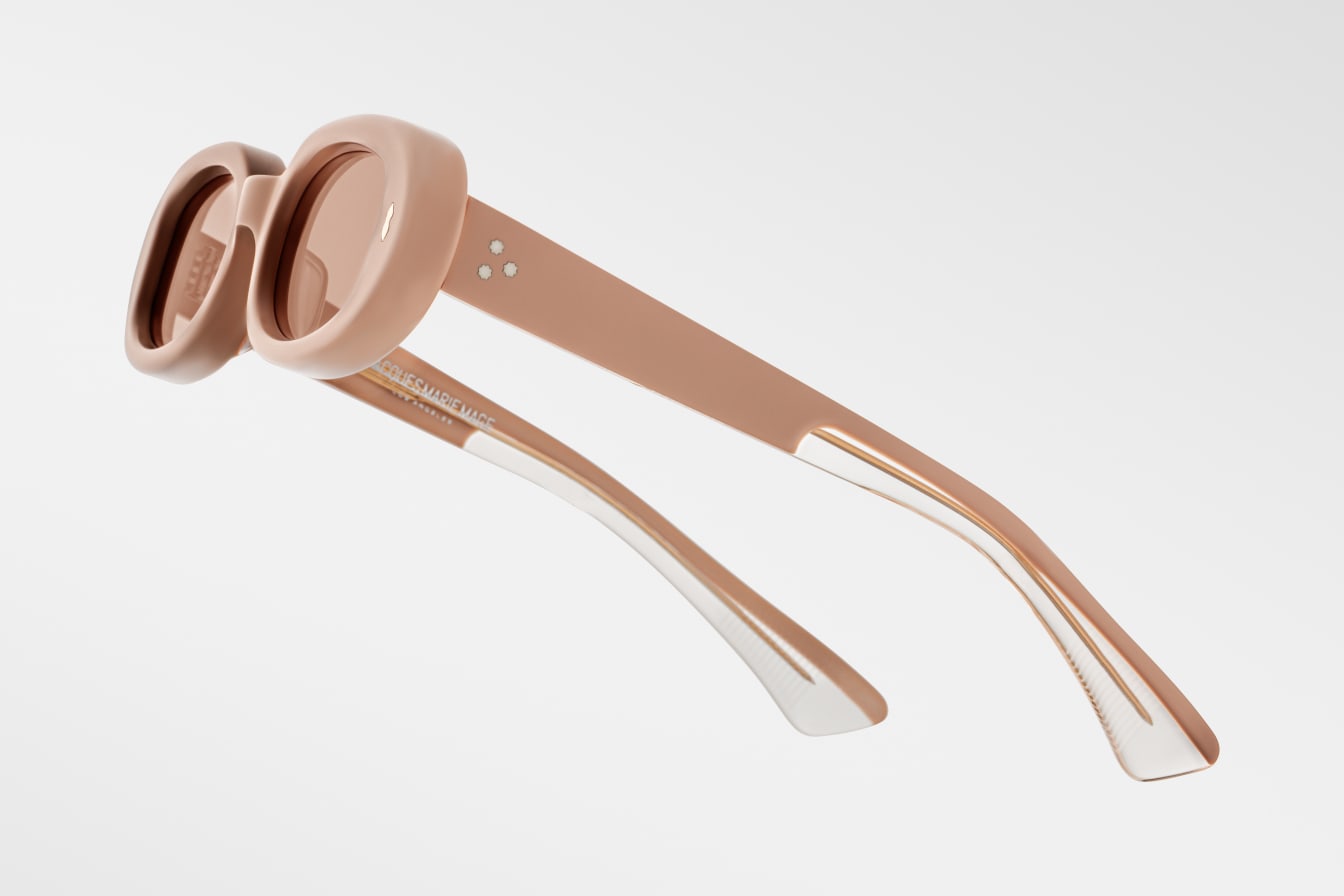 Oval-shaped, ’90s-inspired spectacles newly re-imagined in the sun-faded elegance of matte pastels, featuring double-arrowhead front pins, custom 7-barrel hinges, and ‘Lever’ wirecores with refined hairline details.
