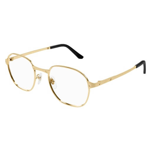 Modern and elegant full-rim pantos shape to complete the Santos Classic family with a contemporary design. The metal front and the temples are enriched with the iconic Santos screws. Acetate end tips shape replicating the cut of the Santos watch case and enriched with the iconic Santos screw. Precious finish in gold or platinum.