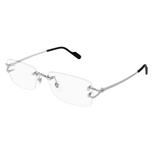 Revamped version of the iconic Décor C metal aesthetic, characterized by the Godron icon along the entire temple. Easy-to-wear rectangular shape in rimless construction for an elegant and iconic look. Iconic Décor C detail being a functional and aesthetic element of the metal hinge. Precious finish in gold or platinum and acetate temple tips with Cartier logo tag to ensure comfort.