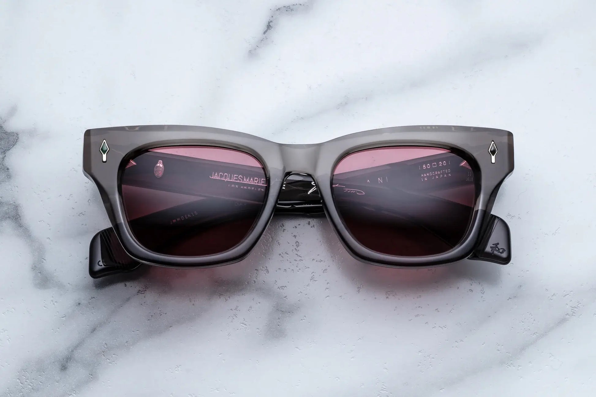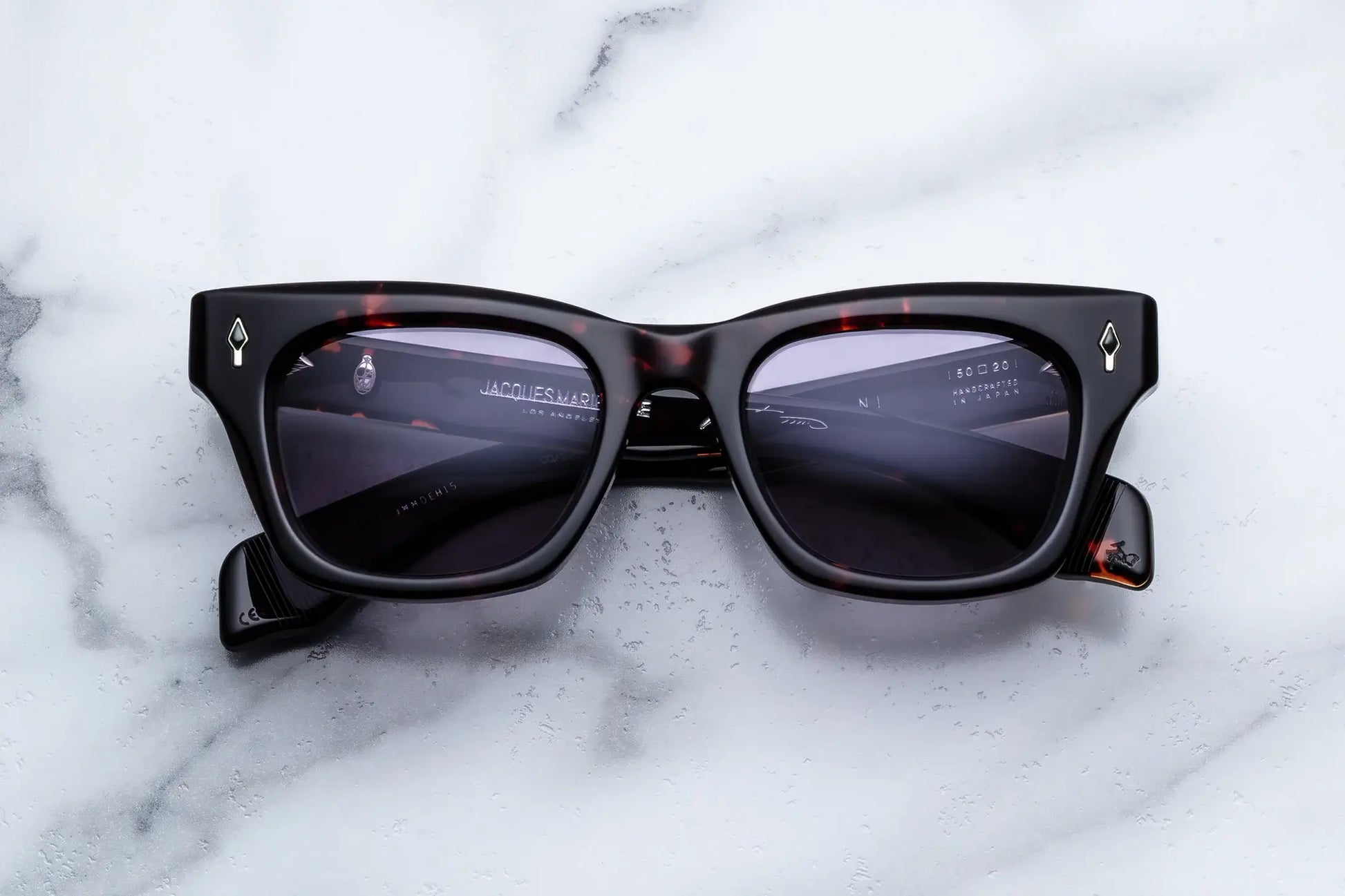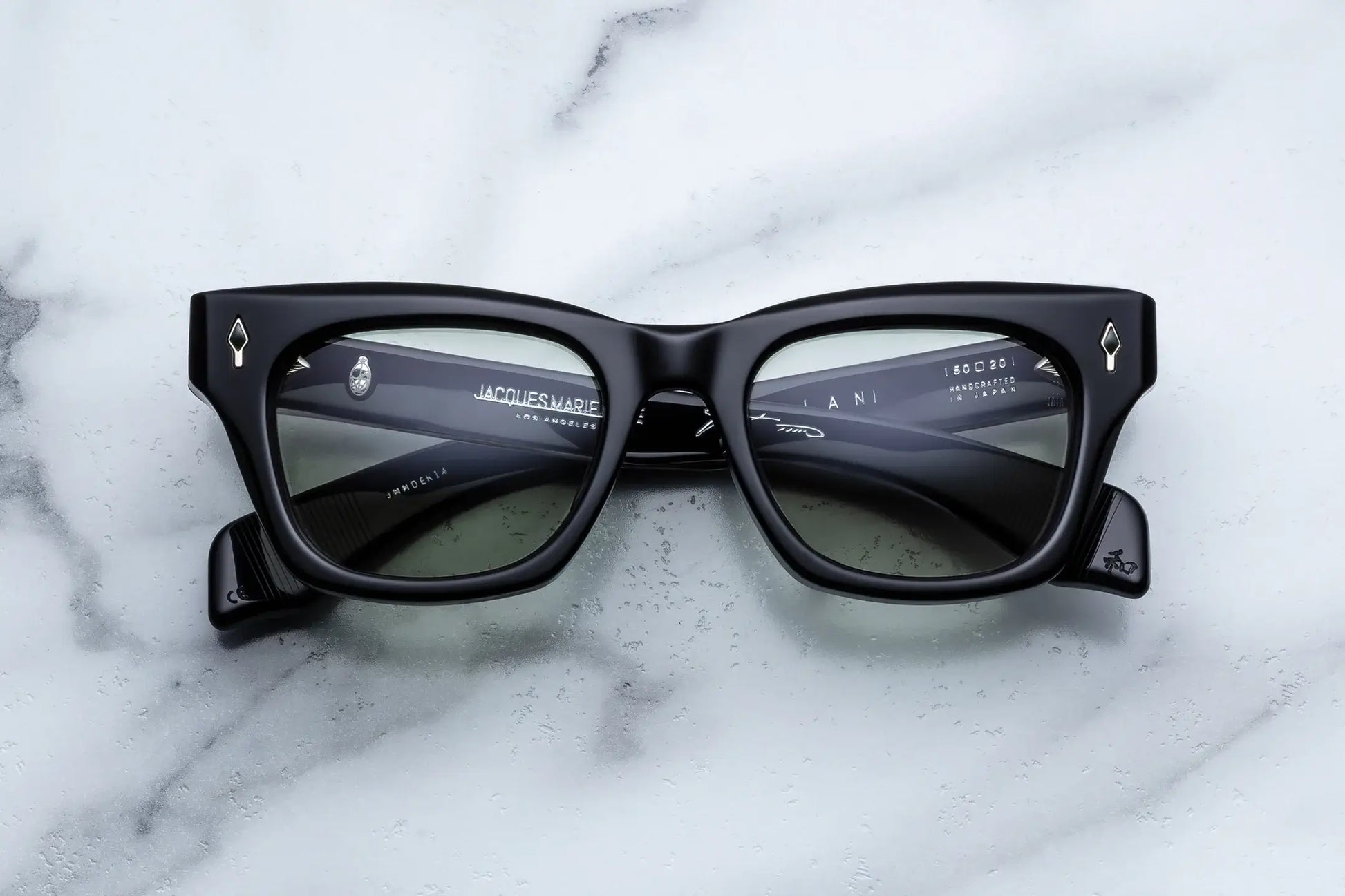 An Icon of JMM reimagined by a living icon, handcrafted in a color story named after a poem by Arthur Rimbaud (1854-1891), who was a major influence on Patti Smith throughout her career. These limited-edition, ‘60s-inspired spectacles are composed of Polished Black plant-based acetate, complemented by Armorlite lenses in Light Bottle Green, featuring our signature arrowhead front-pins in Sterling Silver with Bloodstone inlays, as well as exposed custom wirecores finely engraved with lyrics from Smith’s song “Land,” and inner temples foil-stamped with the artist’s signature in Silver.