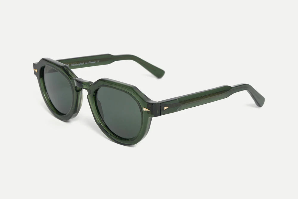 Grenelle, an AHLEM staple shape, is featured in thick 8mm acetate, offers generous dimensions and a variety of colorways. Astute architectural details, like the keyhole bridge and beveled temples featuring our iconic filigree engraved core-wire, add depth to its charm.