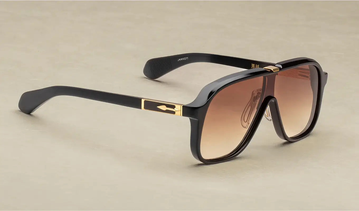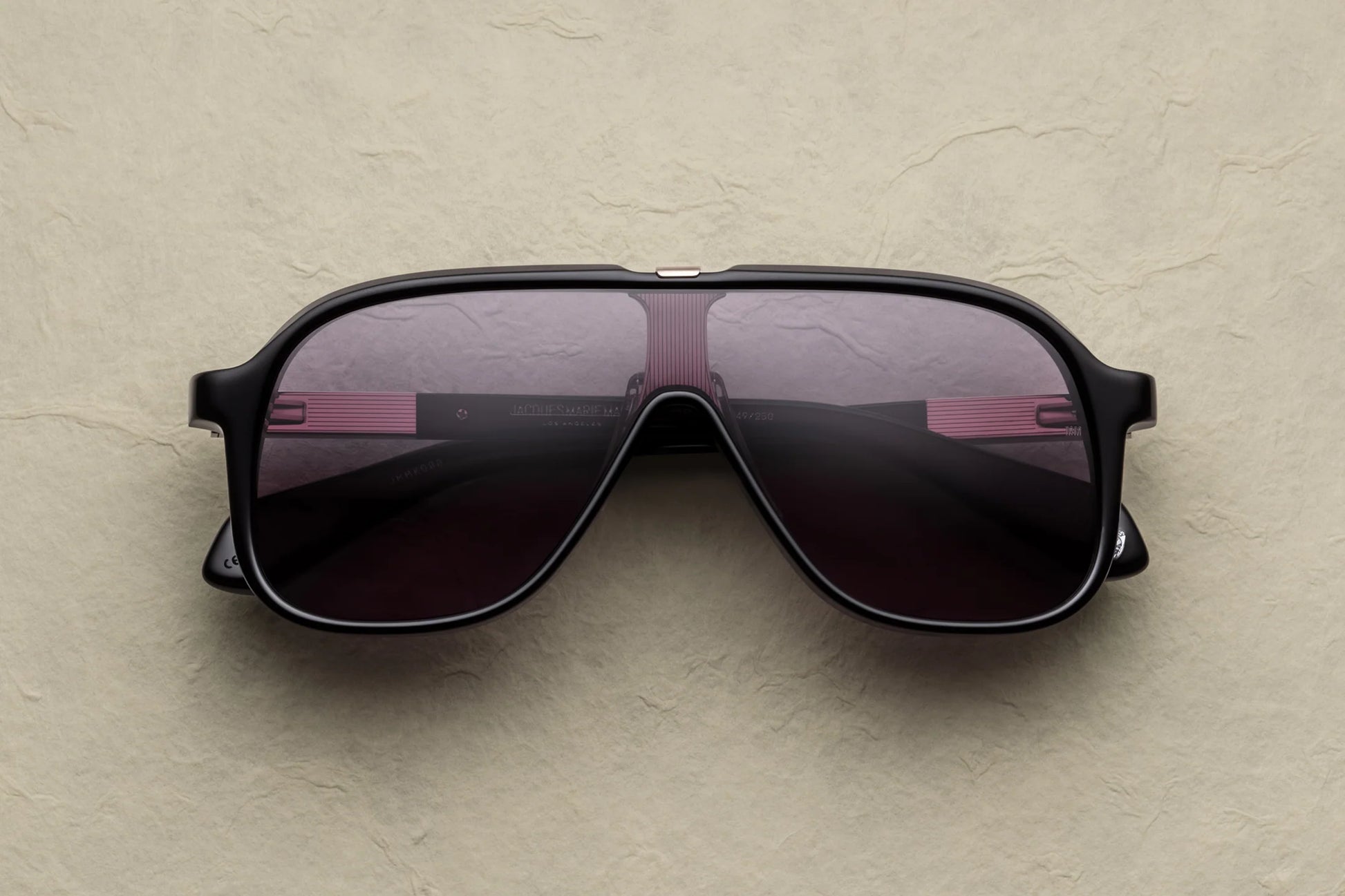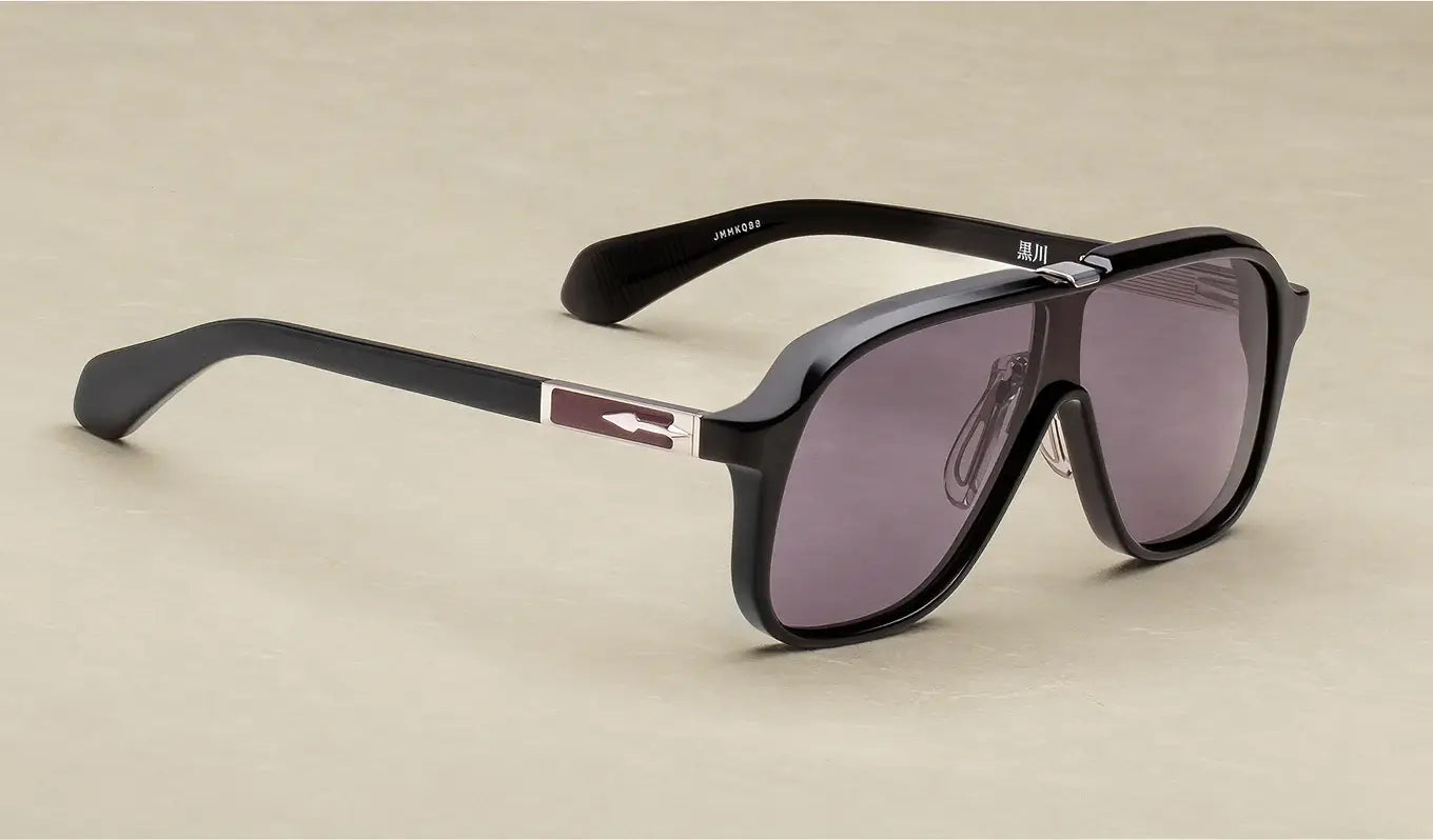 Inspired by the visionary architect Kisho Kurokawa, these limited-edition spectacles stand at the intersection of design and philosophy. A ‘60s-inspired aviator that contrasts its cured acetate frame with a dramatic shield lens, and complements its titanium temple embellishments with polished arrowhead adornments and epoxy inlays, this sculptural expression is eyewear as architectural theory—bold, fluid, and transcendent.