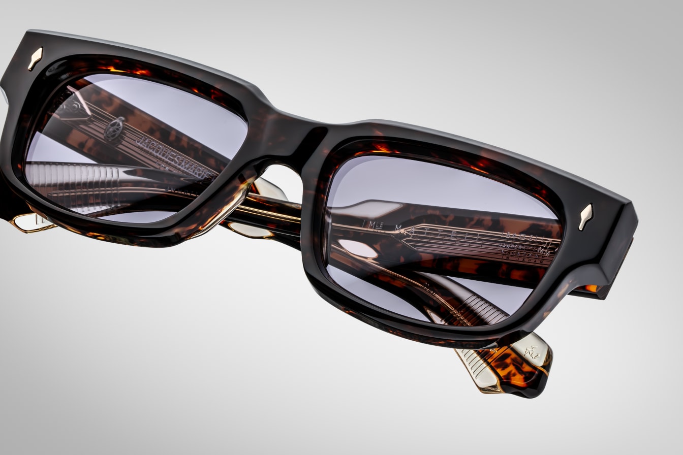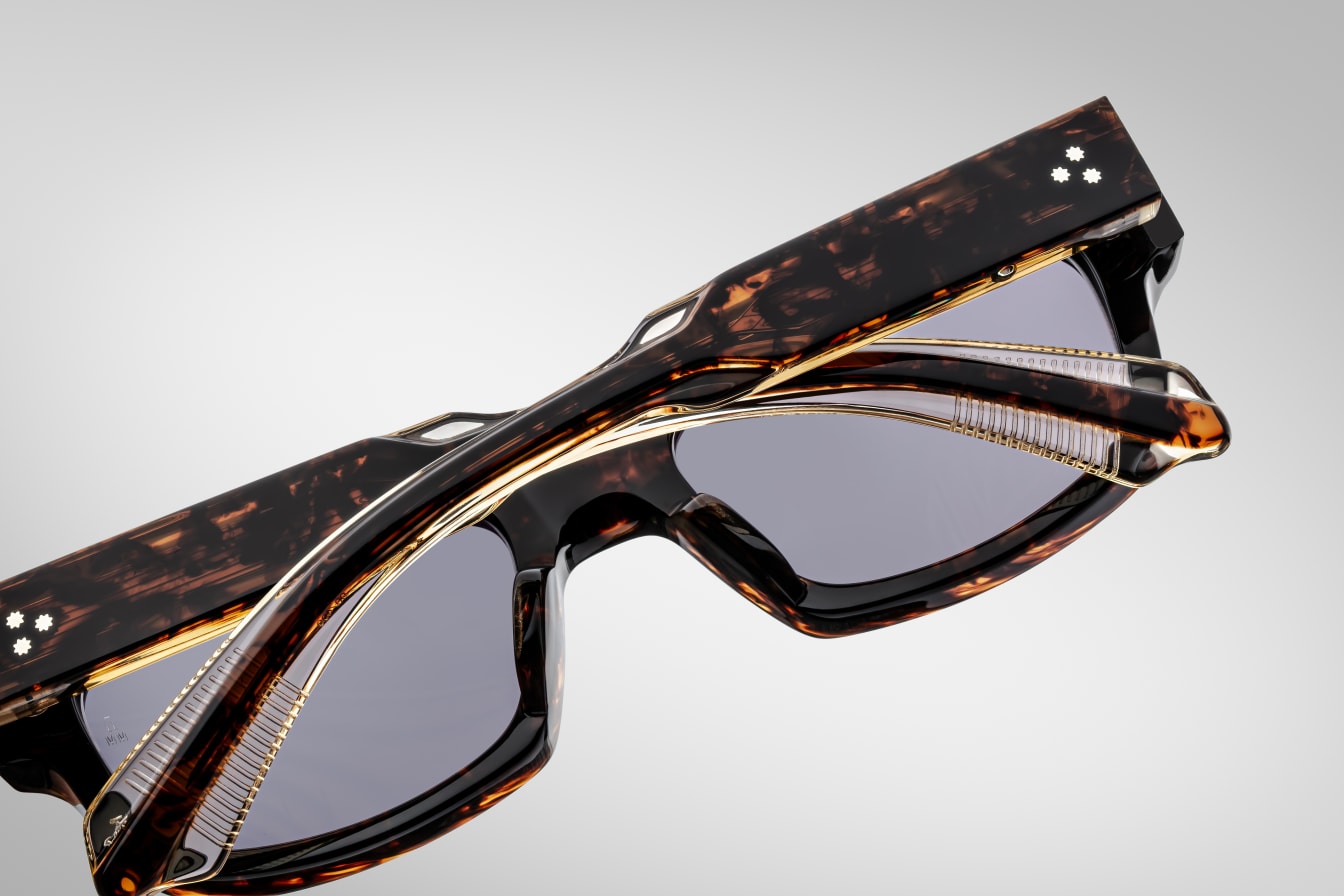 Refined, rectangular, ‘60-inspired spectacles with a medium fit, complemented by sculptural temples with oversized ergonomic tips and our signature precious metal details.