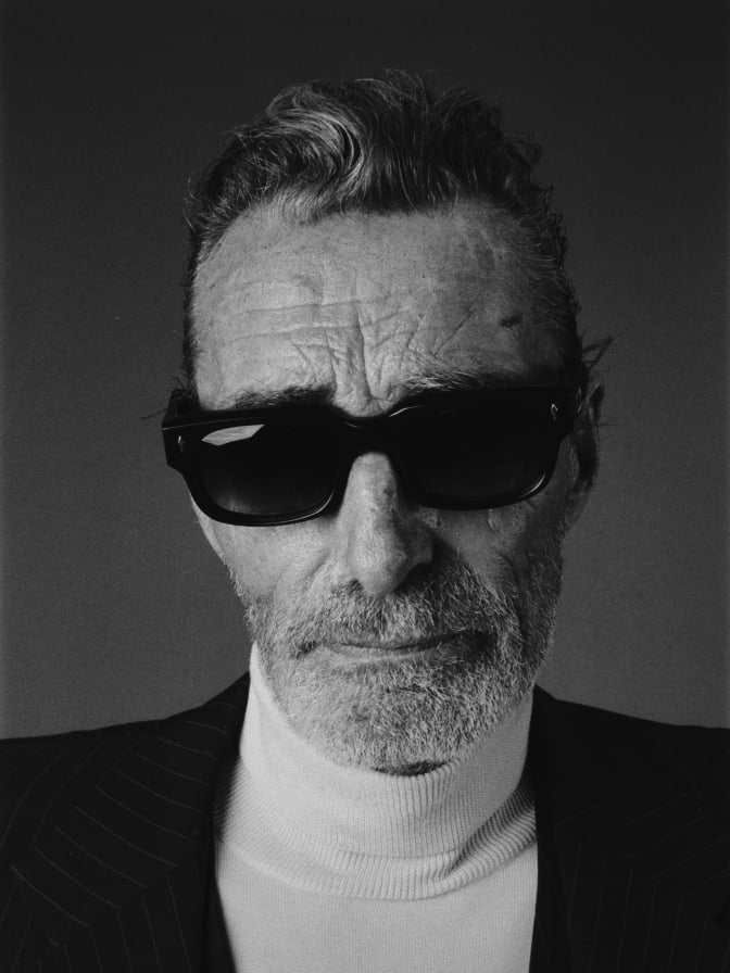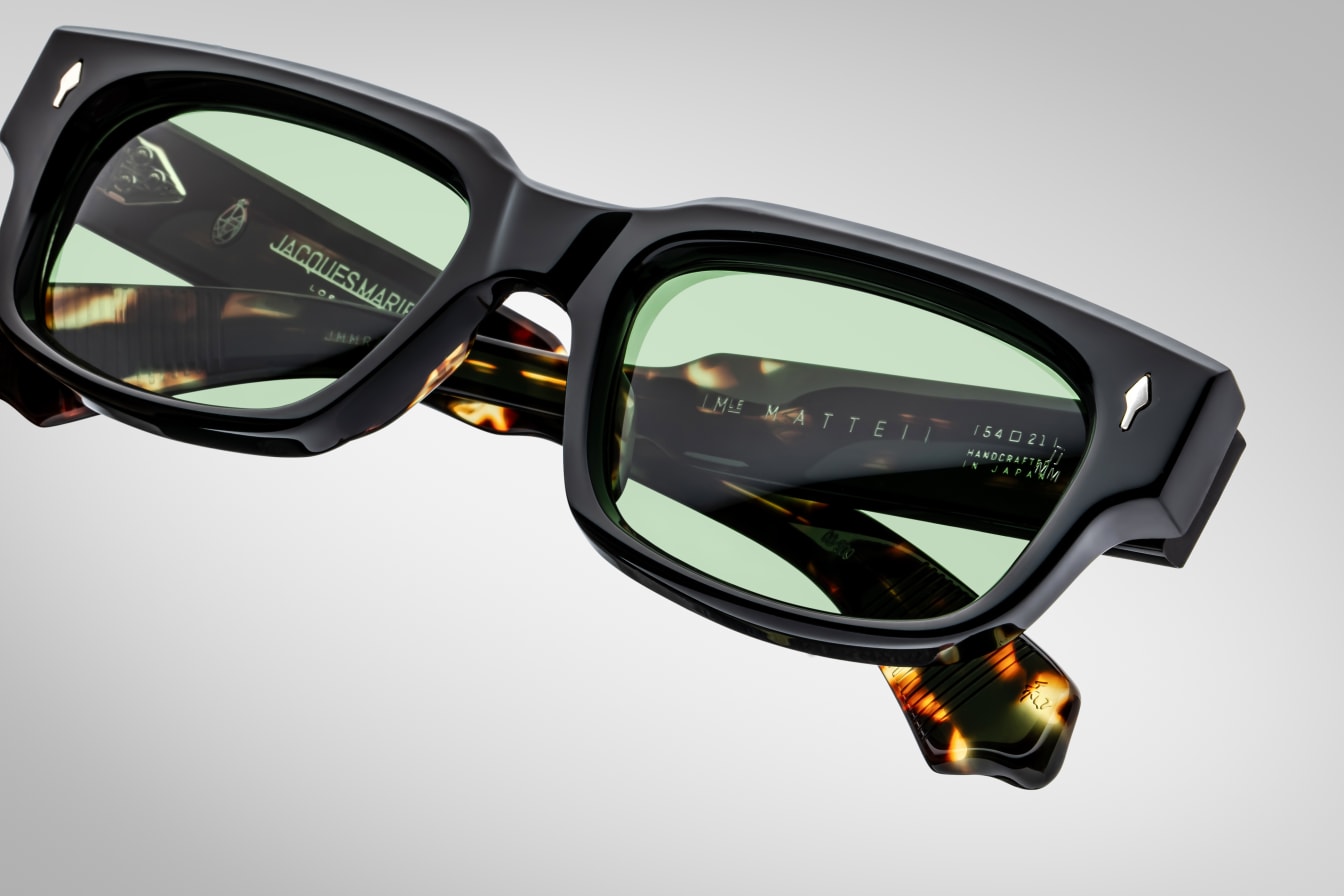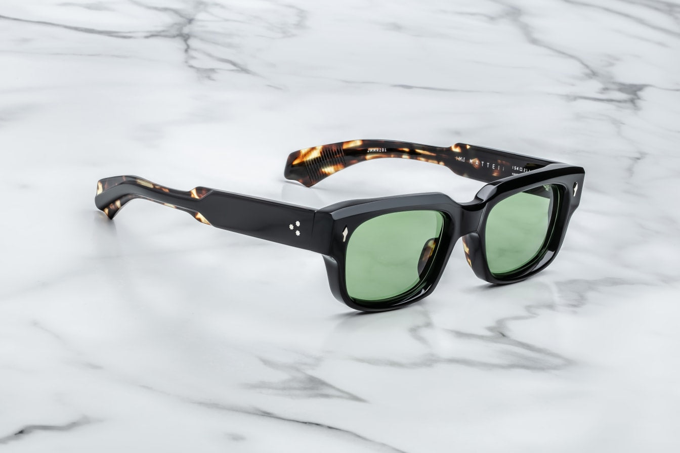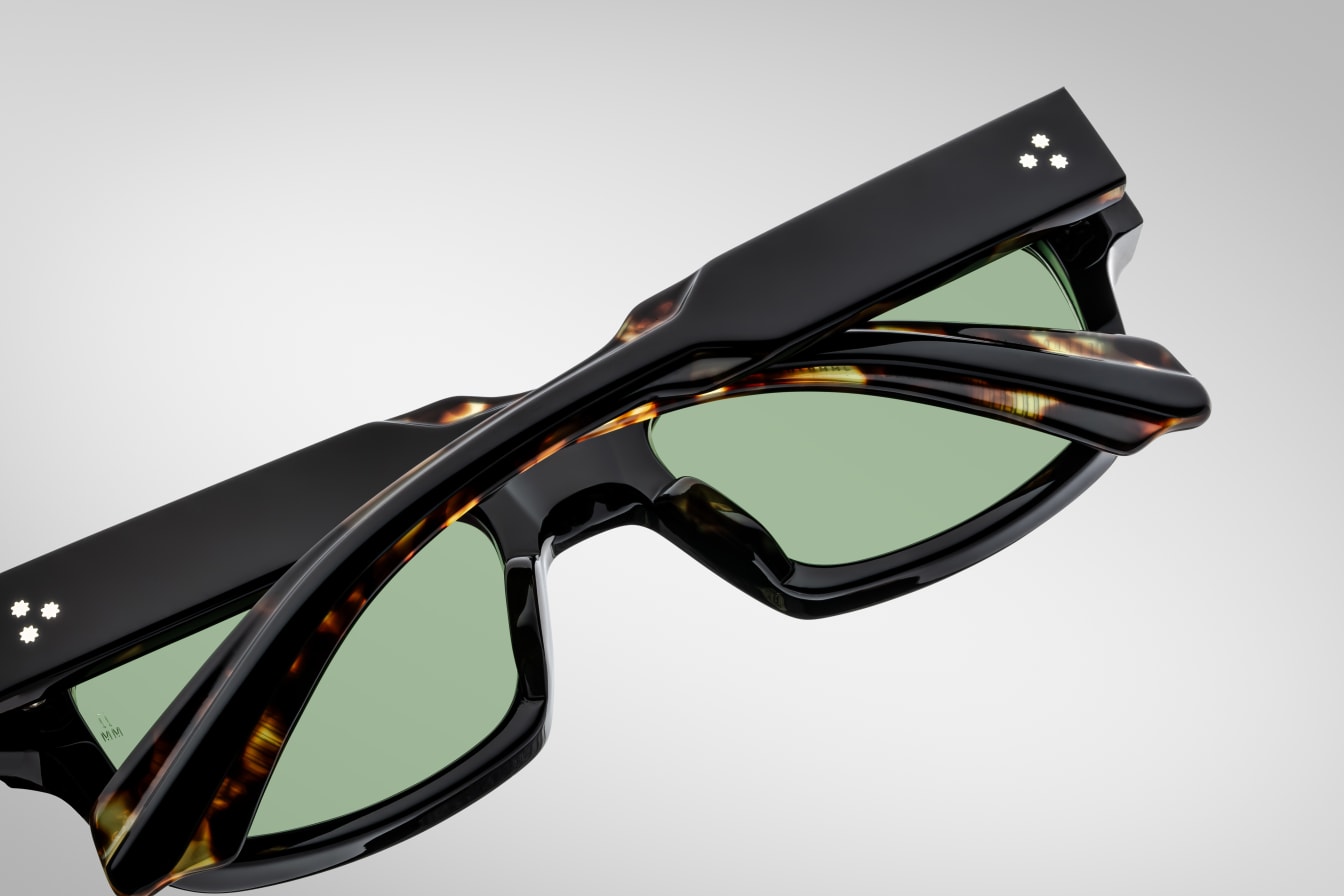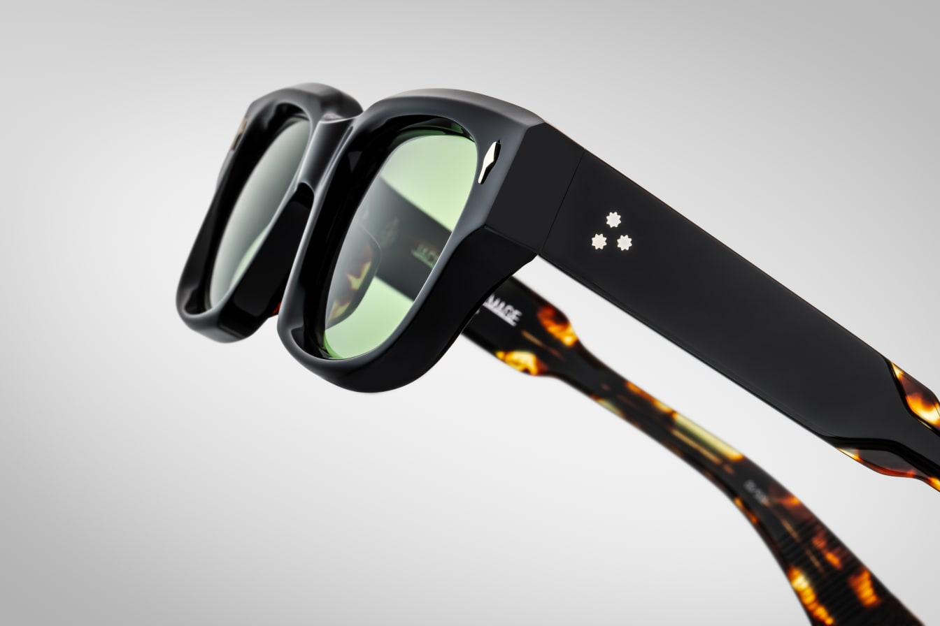 Refined, rectangular, ‘60-inspired spectacles with a medium fit, complemented by sculptural temples with oversized ergonomic tips and our signature precious metal details.