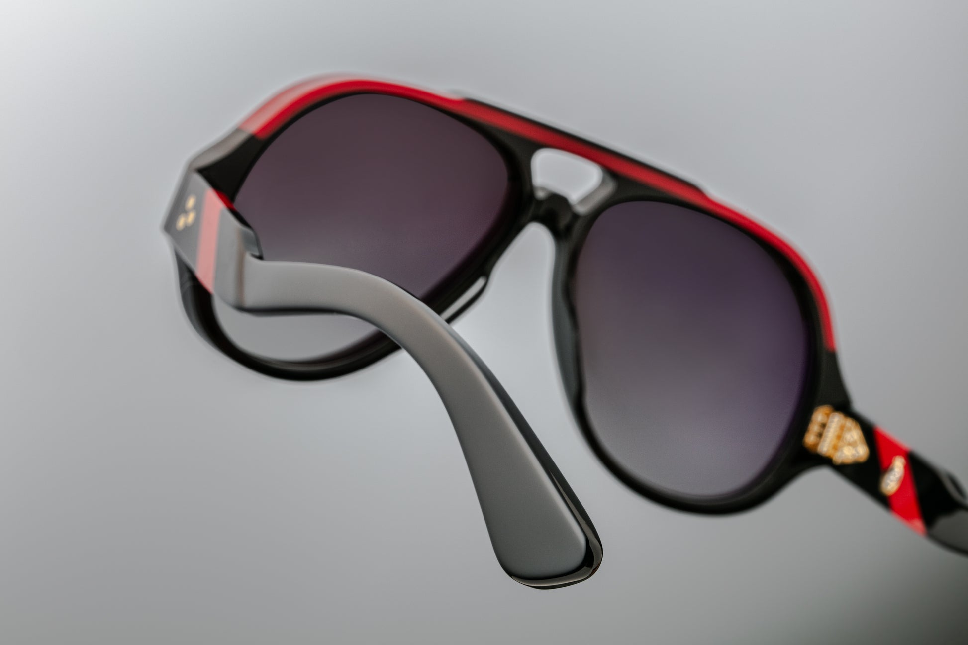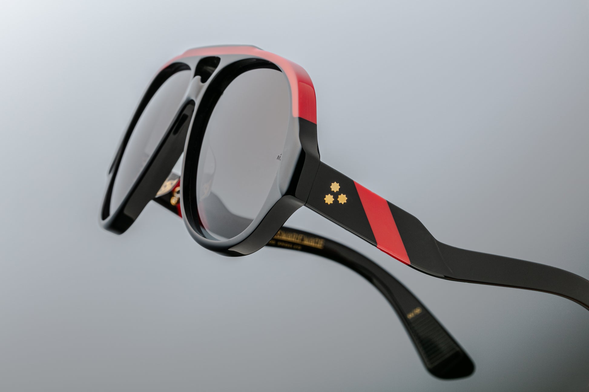 Like stars surfacing from the dark horizon, these uniquely bowed aviators shine with an '80s-inspired essence, a constellation of rolling lines and stellar angles that rise and fall with bright-eyed confidence and celestial sophistication.