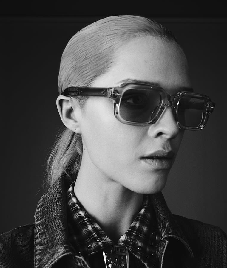 A classic '90s-inspired frame reimagined with dynamic volumes and a tapered wirecore with unique hexagonal temple tip.