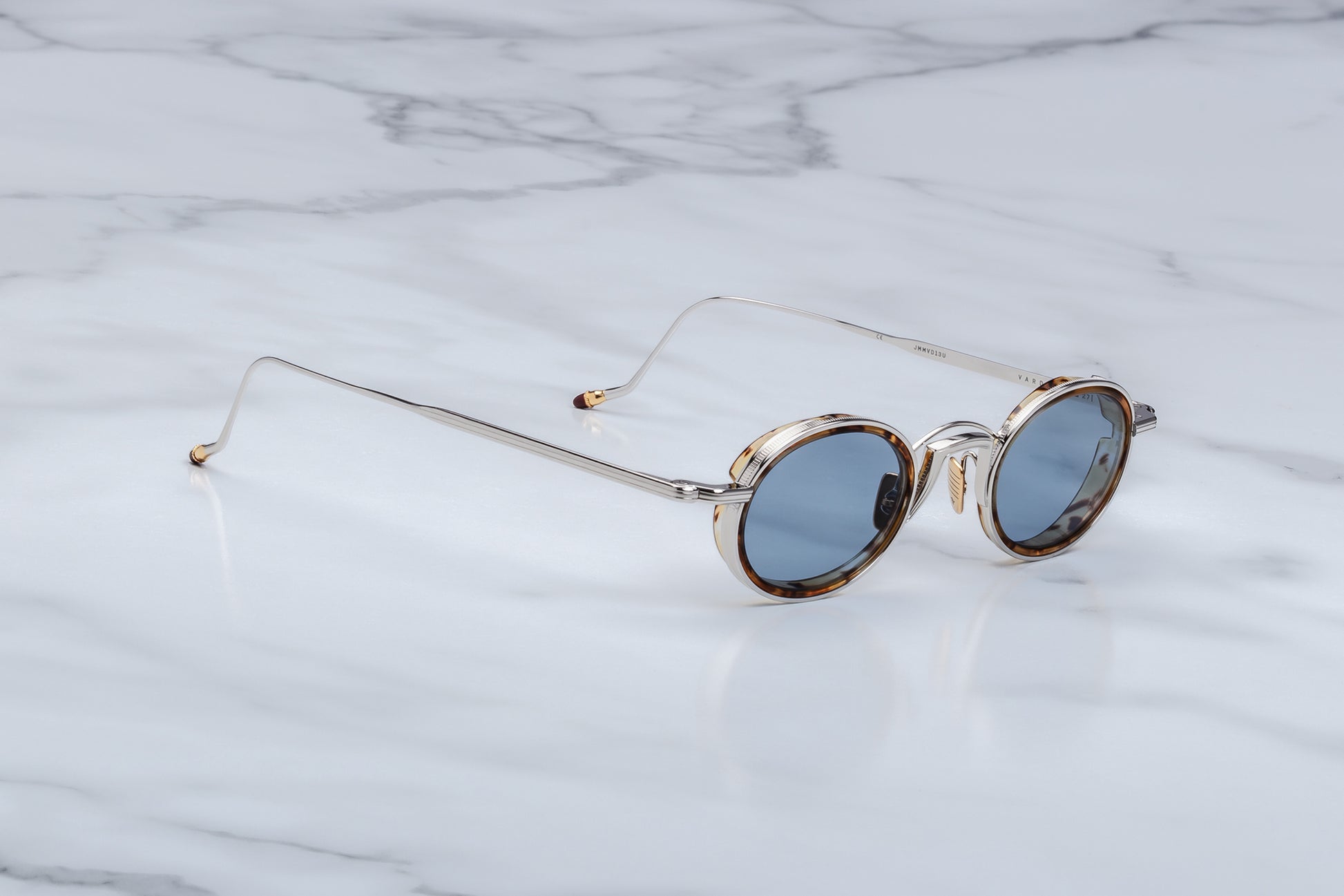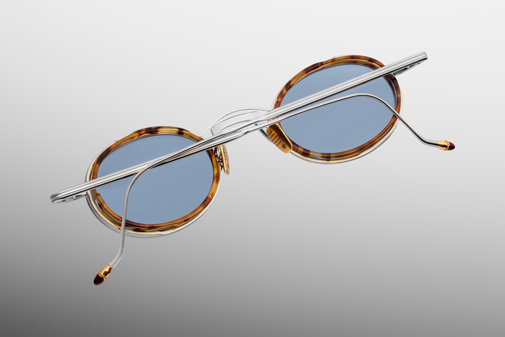 TITANIUM SILVER-FINISHED TEMPLES WITH ART DECO HAIRLINE DETAILS AND HAND-PAINTED EPOXY TIPS IN SIGNATURE BORDEAUX EMPIRE COLOR