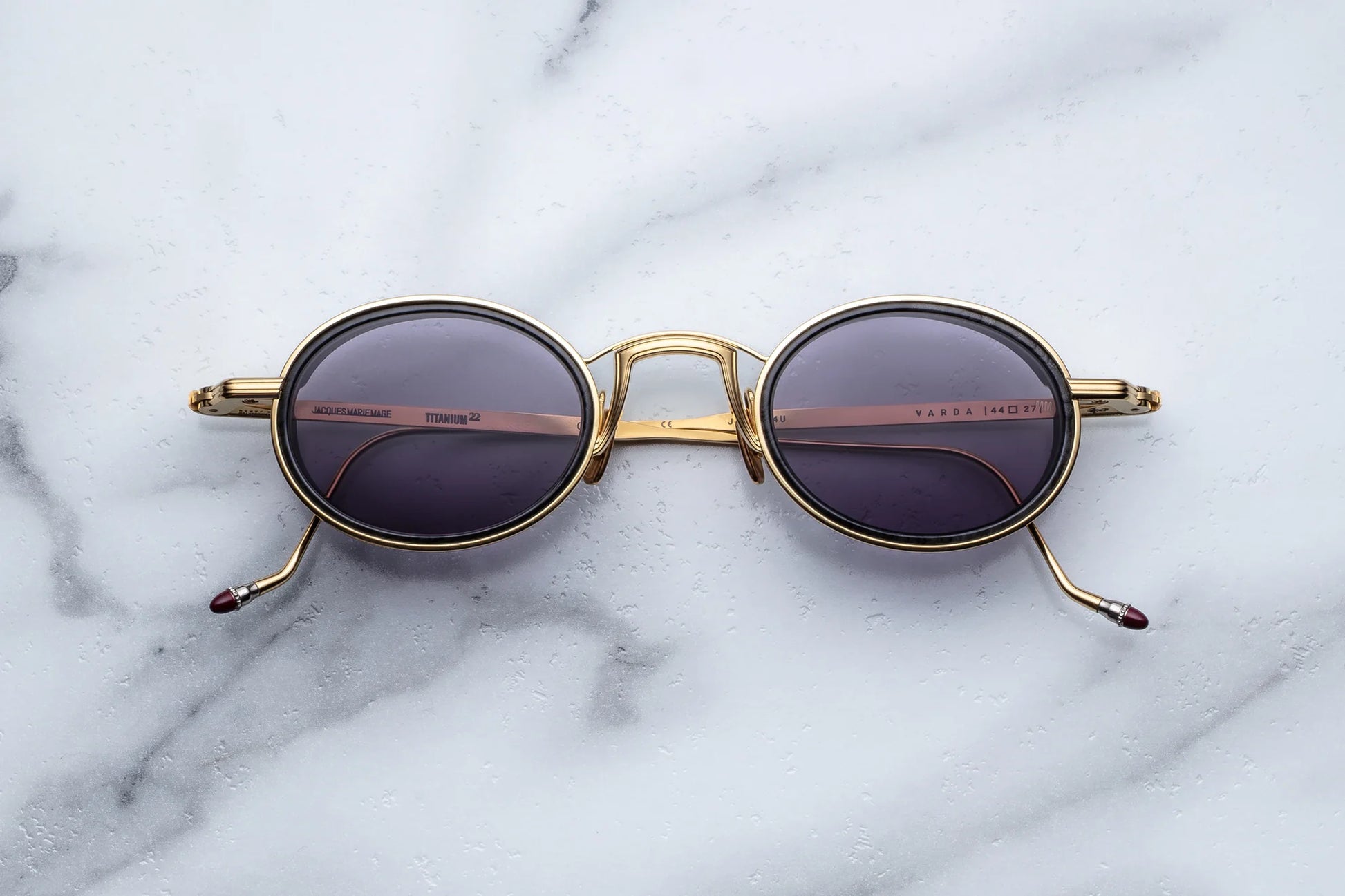 TITANIUM MOON GOLD-FINISHED TEMPLES WITH ART DECO HAIRLINE DETAILS AND HAND-PAINTED EPOXY TIPS IN SIGNATURE BORDEAUX EMPIRE COLOR
